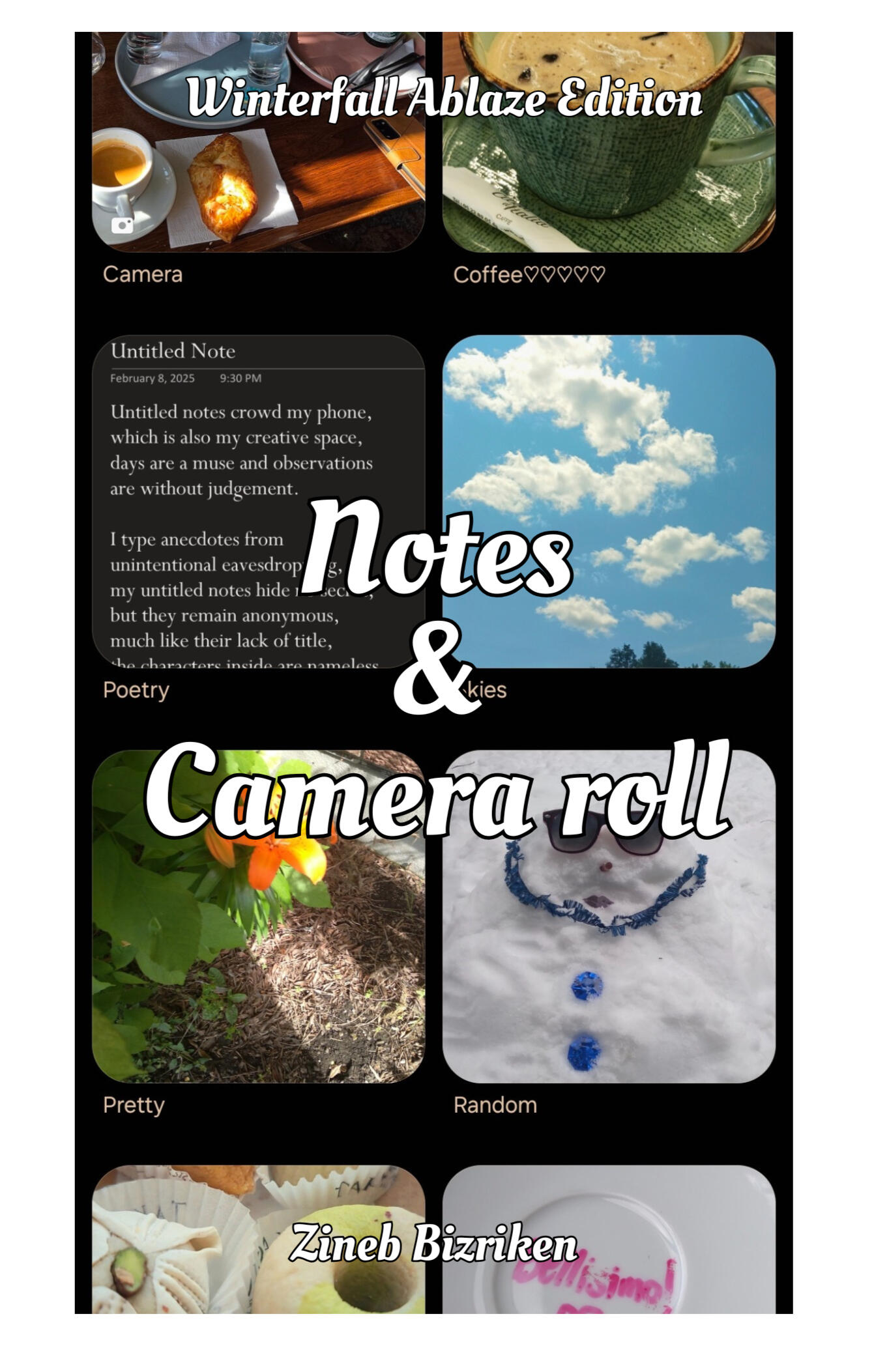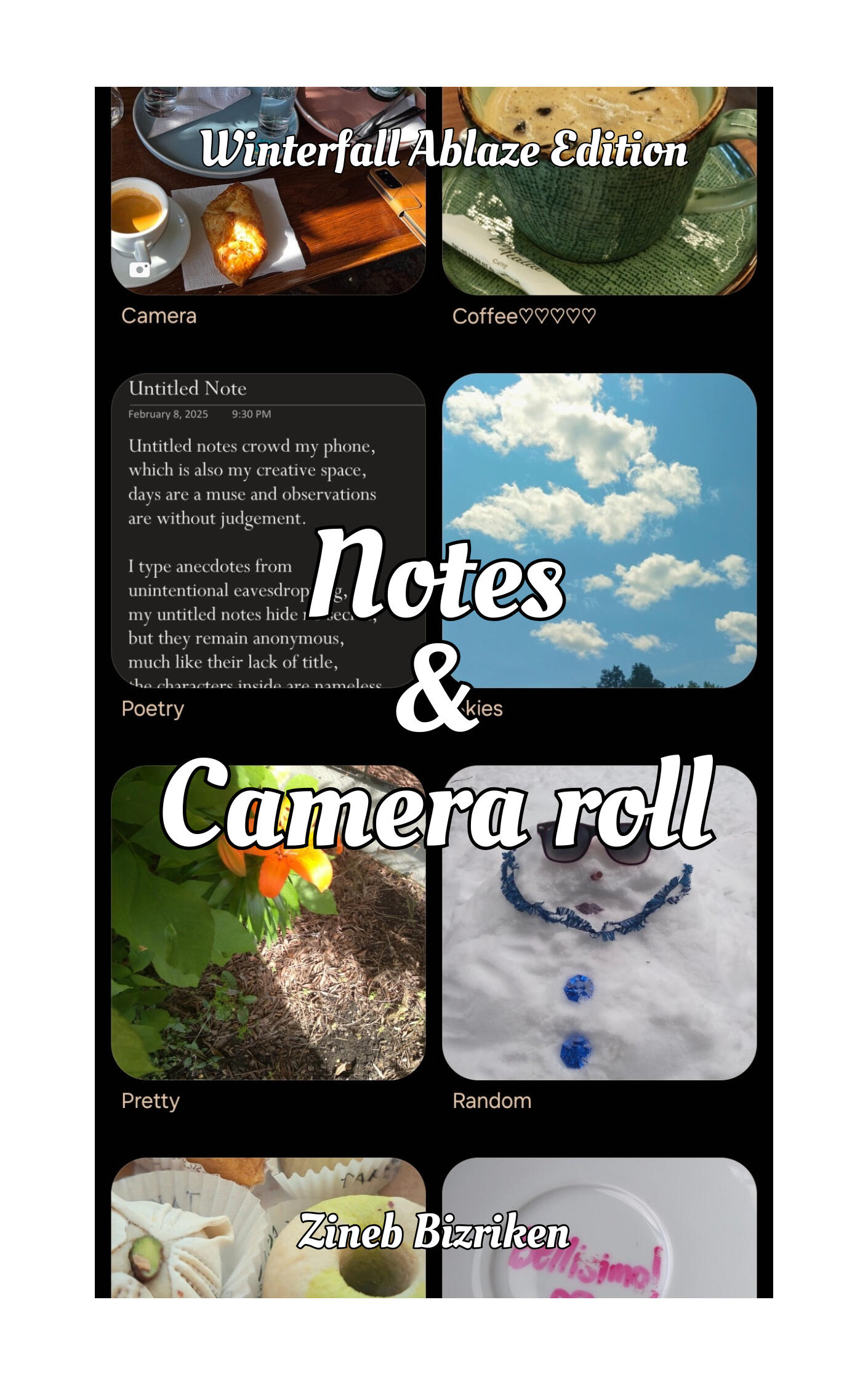 While there is an edition name to this book, it has no theme. Winterfall Ablaze represents the creation of this book from the start of winter to the end of it, and the start of spring. Enjoy my poetry that is much like mismatched notes and, alongside, fragments of pictures coming straight from my camera roll.Sincerely, Zi.B